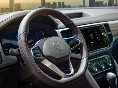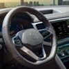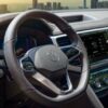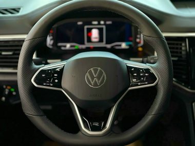 Volkswagen Teramont phiên bản nâng cấp được trang bị vô-lăng thể thao R-line bọc da Nappa và phím bấm kiểu cảm ứng với logo Volkswagen làm trung tâm.